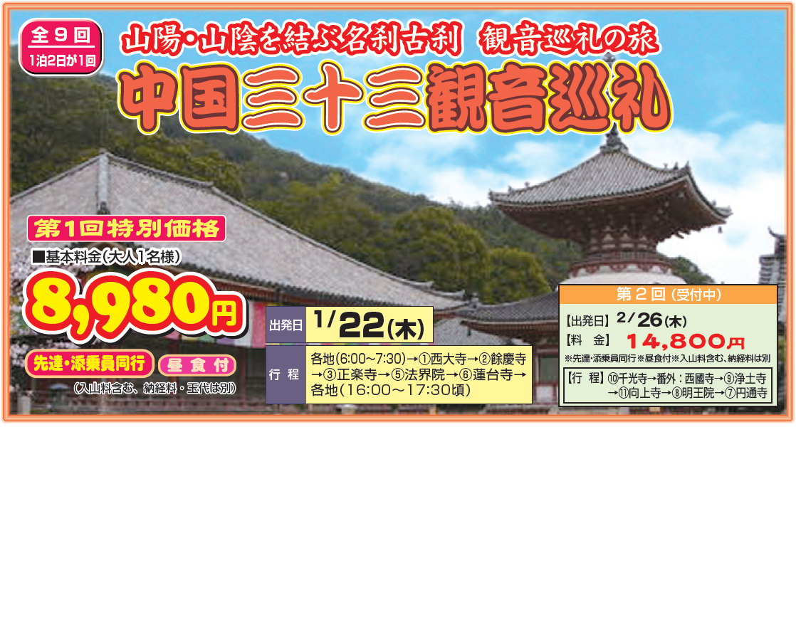 山陽・山陰を結ぶ名刹古刹 観音巡礼の旅 中国三十三観音巡り | |