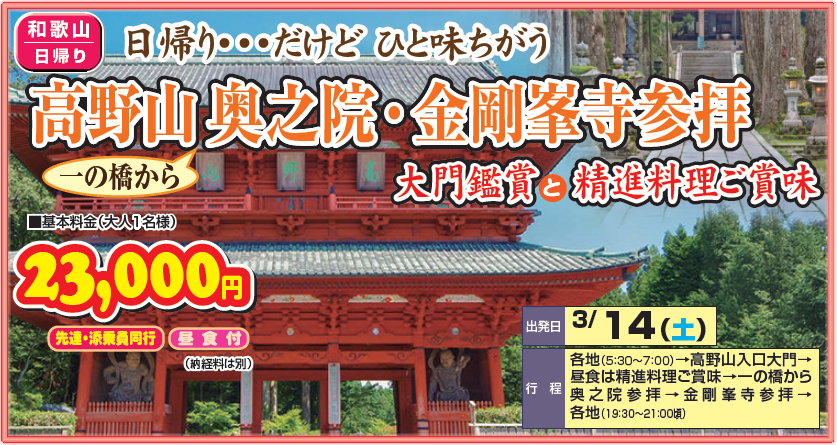 | 日帰り・・・だけどひと味ちがう 高野山奥の院参拝 | |