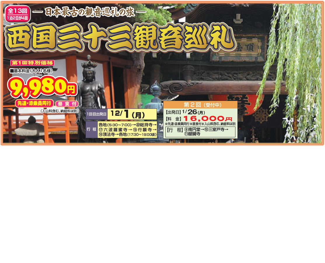日本最古の観音巡礼の旅 西国三十三観音巡礼 | |