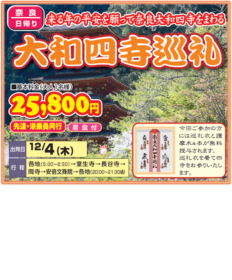 来る年の平安を願って奈良大和四寺をまわる 大和四寺巡礼 | |